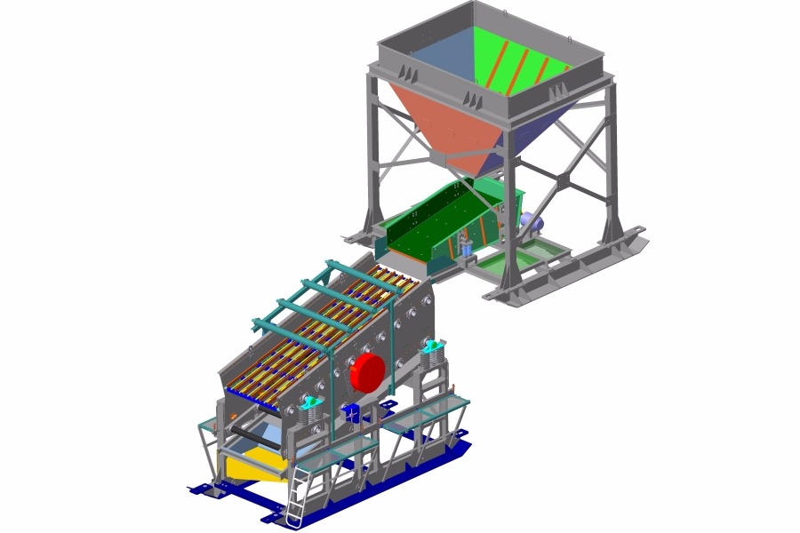 - Vibrating feeder – charging of sand from the hopper to the screen;